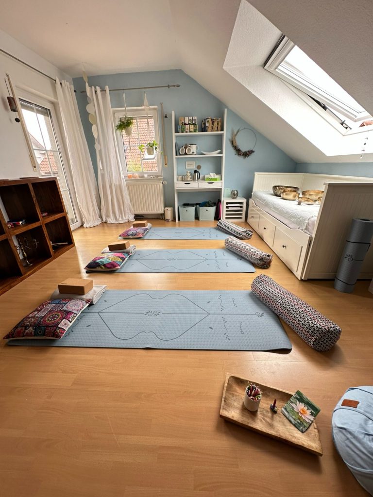 Finde deinen eigenen Raum für Entspannung. Ich zeige dir wie du zum Beispiel durch Yin Yoga, Progressive Muskel-entspannung oder Klangreisen etwas für dich selbst tun kannst.
